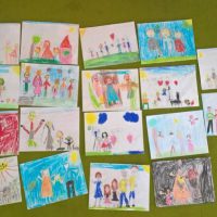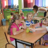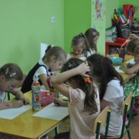 Ogromny stres, który towarzyszył naszym artystkom przełamany został wspólną zabawą na powitanie oraz wierszem o rodzinie i pogadance na temat znaczenia rodziny, o czym każdy, szczególnie mały człowiek wie doskonale, ale zawsze warto przypomieć. Podczas wykonywania prac w tle słychać było muzykę przyjazną dla uszu dzieci. Być może przyczyniła się do powstania tak wspaniałych i różnorodnych prac. Bardzo się cieszymy, że konkurs przypadł dzieciom do gustu i już dziś zapraszamy do udziału w kolejnych tego typu konkursach w przyszłości.