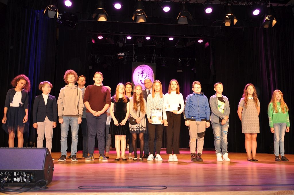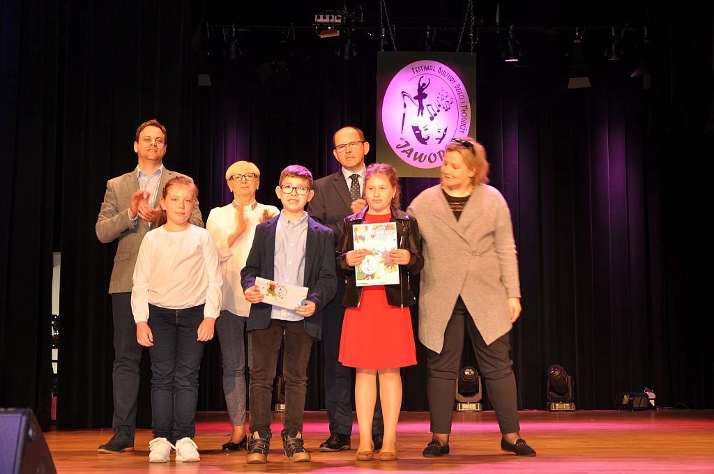 Przewodniczący Rady Miejskiej p. Tadeusz Kaczmarczyk, choć zmęczony godzinnym wręczaniem nagród, postanowił zabrać głos – czym zaskoczył prowadzące panie. Nie tylko podsumował elegancko występy, ale zwrócił uwagę na pracę nauczycieli – instruktorów, którzy byli inspiratorami młodych artystów, bez których bez wątpienia do większości artystycznych eventów by nie doszło. Podziękował pięknie rodzicom, których wkład w kształtowanie osobowości własnych pociech jest bezcenny.