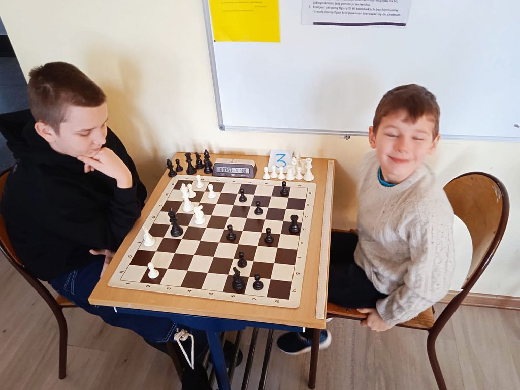 Z kronikarskiego obowiązku dodam, że wszyscy uczestnicy turnieju zostali obdarowani drobnymi pucharkami i innymi nagrodami (m.in. cenne książki szachowe i sprzęt biurowy), które ufundował tradycyjnie dobroczyńca, chcący zachować anonimowość („niech nie wie lewica, co czyni prawica”!). W czasie turnieju można, a nawet trzeba!, było posilać się słodyczami ufundowanymi przez mamę uczestnika zmagań oraz w/w sponsora. Każdy z grających otrzymał również butelkę wody mineralnej.