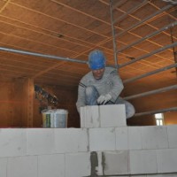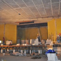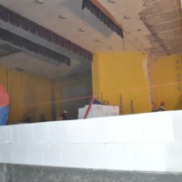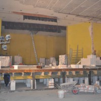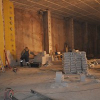 Ostatni poniedziałek stycznia na budowie wypełniony jest intensywną pracą. Już wylany został beton na scenie, wznoszą się ścianki działowe. Hen, wysoko, ponad sceną trwają roboty zabezpieczające pomieszczenie przed ogniem. Szybko posuwają się prace instalacyjne.