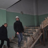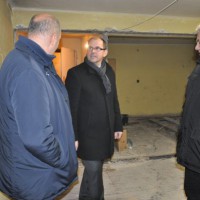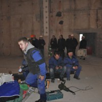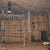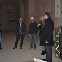 Po placu budowy oprowadził zainteresowanych kier. budowy, Henryk Pietraszko. Padały dociekliwe pytania o stan remontu, a szczególnie o terminowość, a odpowiedzi zostały zaakceptowane z wyraźnym zadowoleniem. Więc wszystko idzie we właściwym kierunku. Już nawet został wybity otwór, który z czasem zamieni się w drzwi prowadzące z windy do sali widowiskowej.