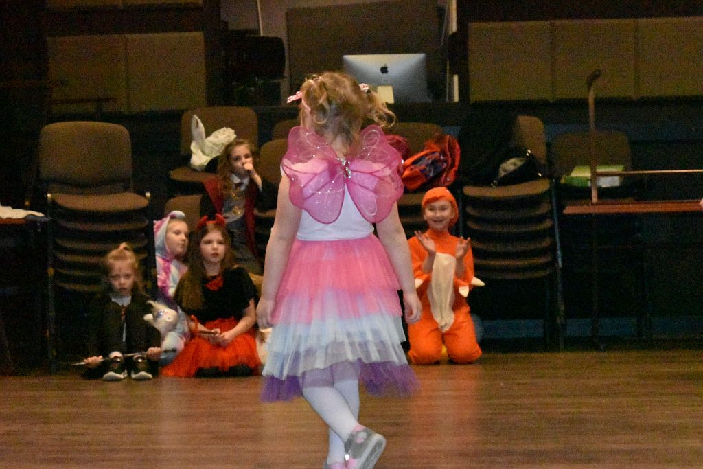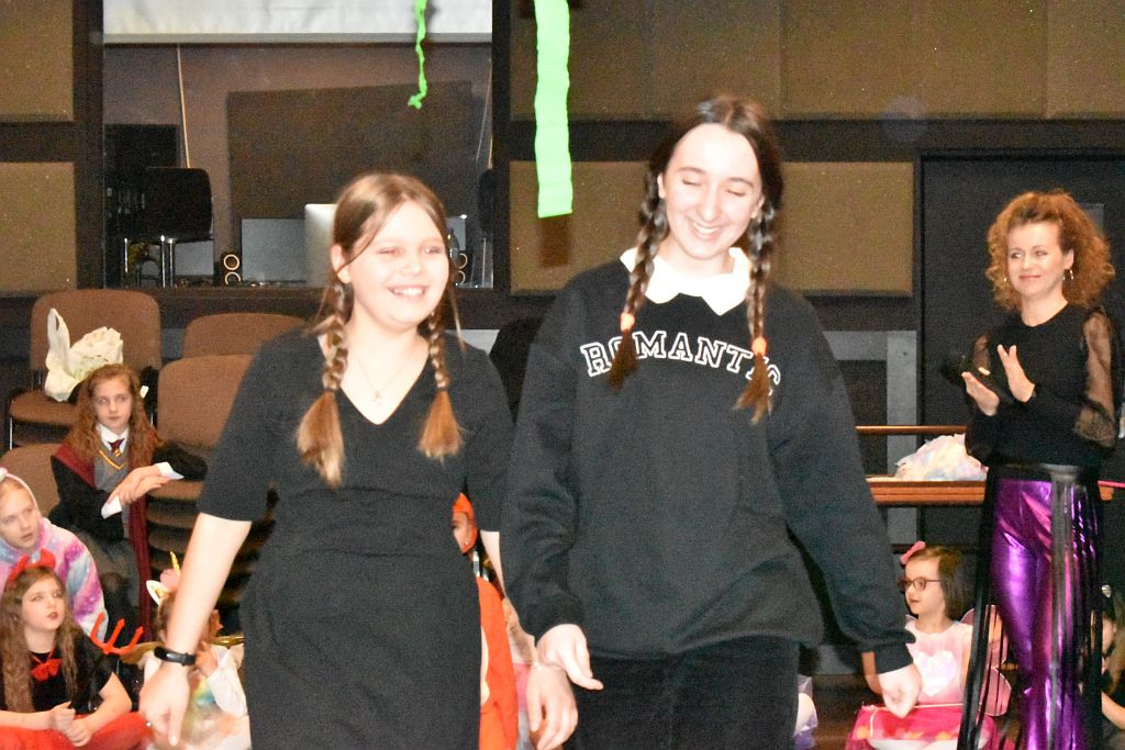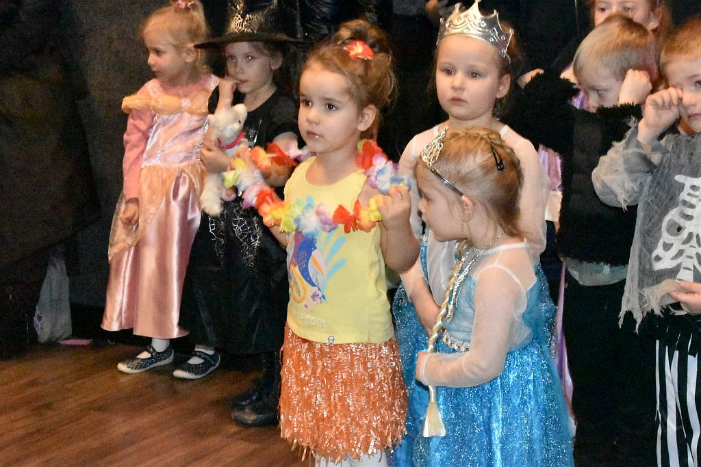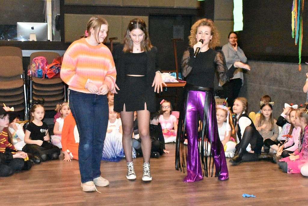 – Później rozpoczął się pokaz mody karnawałowej – opowiada wodzirejka, P. Górecka. Wszystkie dzieci dumnie zaprezentowały swoje swoje. Nie zabrakło księżniczek, wróżek, motylków, biedronek, pszczółek i innych owadów. Pięknie prezentowali się także batman, spider man, gorylek, dinuś, klaun, Harry Potter, Hermiona a nawet bardzo popularna ostatnimi czasy Wandesday, uroczy Błazenek, nawet Faraon o nieznanym nazwisku, może to był sam Tu – Ten – Ham – On? Nie sposób spamiętać wszystkich strojów, ale jedno jest pewne- wszystkie dzieci wyglądały zjawiskowo. Imprezę rozkręcały m.in. utwory takie jak: „Claps Snap”, „Kaczuchy”, „Macarena”, itp. Nie zabrakło pociągu , a nawet zabawy w „Gorące Krzesło”.