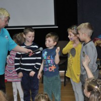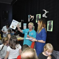 Dzieci naprawdę wiedzą, jak należy postępować. Potrafią znakomicie wspóistnieć z innymi – ludźmi i zwierzętami. (Szkoda, że z tego wyrastają…) Dowodem były bajeczki edukacyjne, które panie z TOZ-u pokazały. Dzieci, nawet te, które niezbyt uważnie śledziły przygody dzika Ryjka, potrafiły bez problemu odpowiadać na pytania – nie tylko dotyczące filmików, lecz również te bardziej ogólne, związane z przyrodą. Nagrodą za dobre odpowiedzi były prezenty, drobne, ale bardzo sympatyczne – naklejki, książeczki, plakaty. W zamian dzieci ofiarowały zwierzxętom karmę, a tej nigdy nie jest za wiele.