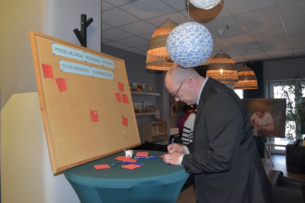 Na zakończenie p. podinspektor Anna Szeląg zaprosiła do zwiedzania wystawy – z sercem. Niech te obrazy przypomną nam, że dom może stać się początkiem wszystkiego. Że ciepło codzienności potrafi wyprostować to, co złamane. I że świat dziecka otwiera się tam, gdzie ktoś decyduje się być obok. Przy „Tablicy Wrażeń” znajdują się karteczki i długopisy. Będzie nam ogromnie miło, jeśli podzielą się Państwo swoją refleksją o wystawie — co poruszyło, co wybrzmiało dla Was najmocniej. Dziękujemy, że Państwo jesteście. Dziękujemy za każdy dom, który otwiera świat dziecku.