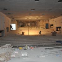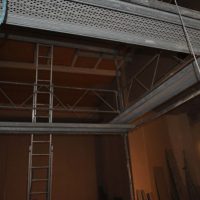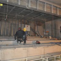 Jednak już widać kształt widowni – powstało schodkowe nachylenie, na którym za jakiś czas zostaną zamontowane fotele. Podobne, choć mniejsze nachylenie montowane jest również w loggi, zajmującej najwyższy pułap.