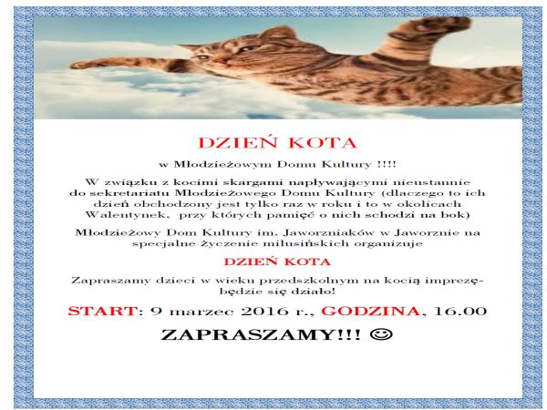 Kiedy koty dają o sobie znać najgłośniej? Oczywiście w marcu.Chociaż akurat 17 lutego obchodzony jest Międzynarodowy Dzień Kota – Giornata mondiale del gatto. Jest nawet święto czarnego kota – 17 listopada. Kot więc, jak się okazuje, to zwierz bardzo poświęcony. Lecz dzieciom ciągle mało! Czytaj więcej o Marcowe kociaki …