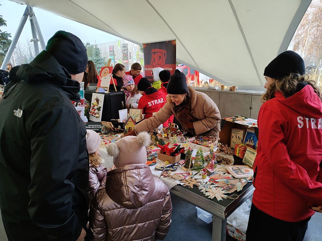 Swoje nietuzinkowe prace zaprezentował także Młodzieżowy Dom Kultury im. Jaworzniaków. Były to prace wychowanków, które wykonane zostały podczas zajęć: niezwykle oryginalne wyroby ceramiczne, kartki świąteczne, wyszywane reniferki, dziadki do orzechów, skrzaty i wiele innych dzieł. Mieszkańcy kupowali chętnie, bo każda praca jest wyjątkowa, każda inna , każda tak samo piękna. Pojawiła się także gwiazda Carrantouhill ze swoimi podopiecznymi z MDK – pięknie zaśpiewały, nawet po angielsku, zapachniało nie tylko ciastami, które serwowały panie z kół Gospodyń, lecz również klimatem świątecznym i wielkim światem.