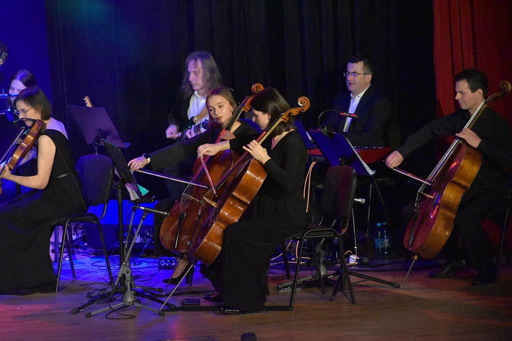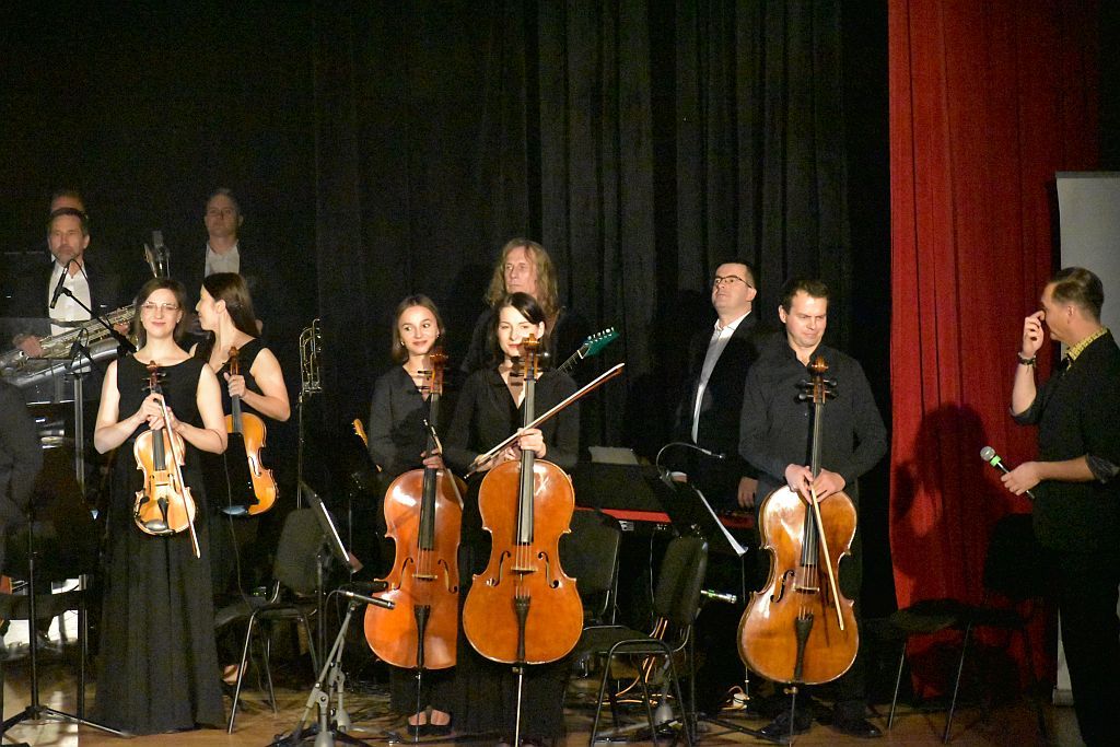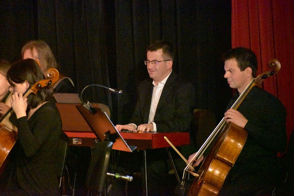 Tak właśnie zaczął się Koncert dwóch wyśmienitych jaworznickich orkiestr Orkiestry Kameralnej Archetti i Orkiestry Rozrywkowej eMBand pod dyrekcją maestro Macieja Szczurowskiego i nieco mylącym nagłówkiem W starym kinie” – od Hymnu!