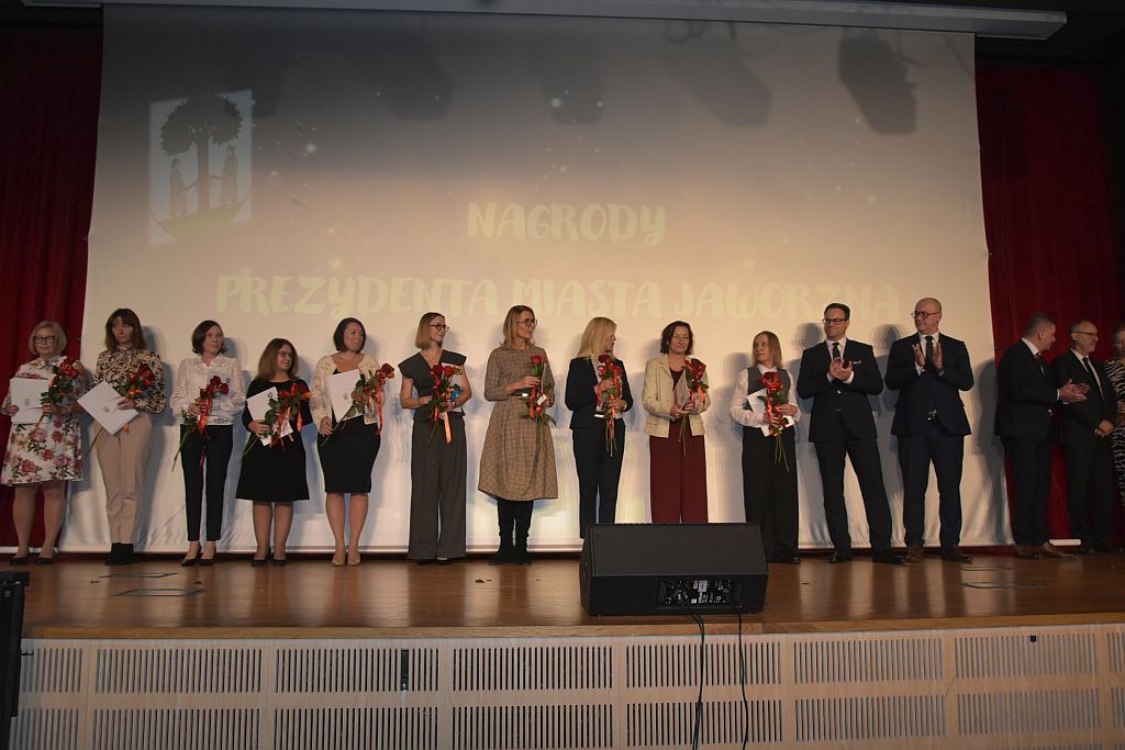 Gratulacje jeszcze raz elokwentnie, szerokim potokiem ukłonów w kierunku Nauczycieli, którzy przybliżają swoich uczniów do owego „niezmierzonego morza nauki” złożył wiceprezydent Łukasz Kolarczyk, po nim dodała kilka słów Prezes Oddziału Nauczycielstwa Polskiego w Jaworznie, p. Monika Łazowska, zakończył laudacje na cześć nauczycieli przewodniczący MOZ NSZZ „Solidarność” Pracowników Oświaty i Wychowania. Jednak zamiast podziękować wygłosił pean na cześć F. Chopina i wplótł w życiorys kompozytora polityczne elementy, które zdziwiły i nieco zaskoczyły zebranych pedagogów, którzy z natury wykonują zawód od polityki jak najdalszy.
