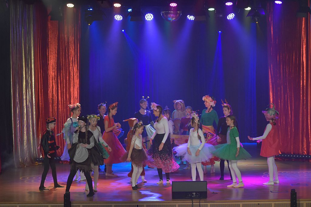 Na szczęście na scenę wybiegli tanecznym korowodem podopieczni p. Ewy Szpak, z najstarszej i średniej grupy MDKowskiego Błysku, którzy zaprezentowali wybrane piosenki z układami choreograficznymi z musicali, które z wielka ochotą przybywali mieszkańcy naszego grodu, oklaskując je z entuzjazmem. Były to przeboje ze spektakli Król Rozrywki, Na ratunek Kwiatolandii oraz Z pamiętnika Dony (z piosenkami ABBY). Znów na ustach zagościły uśmiechy, znów ręce same składały się do oklasków.