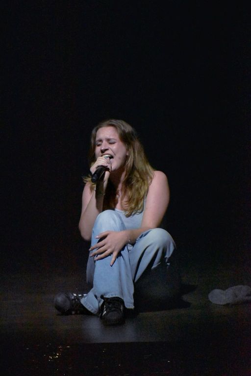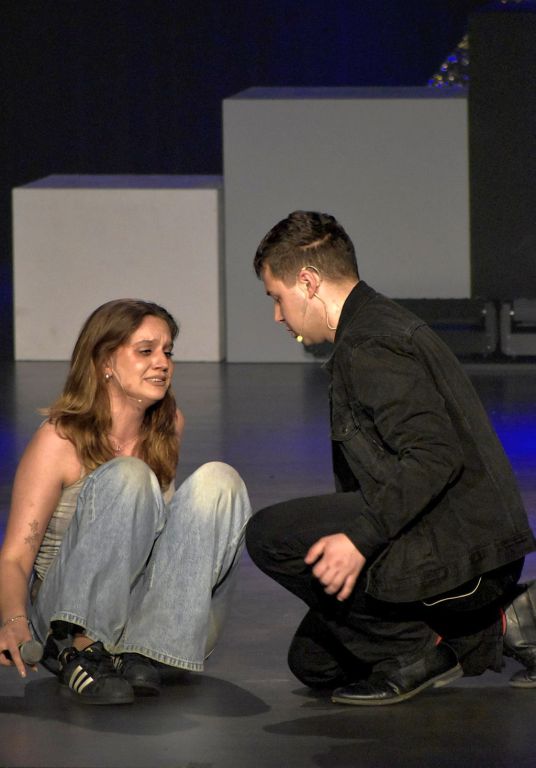 ES – No, wiadomo, że sama bym nie dała rady tego wszystkiego zrealizować, chociaż jestem tak jakby matką tego projektu. Za ruch sceniczny, który idealnie podkreślał napięcie między perfekcją a zmęczeniem, odpowiadała Klaudia Czerwik-Adamek. Z Klaudią już trzeci rok pracuję i świetnie mi się z nią współdziała. Ja jej mówię, że to tak widzę i ona to łapie i robi. Klaudia jest instruktorem w Domu Kultury. Drugą, równie ważną postacią jest Pani Ania Buczkowska, która jest instruktorką MDK od wokalu. Jest rewelacyjna, naprawdę. Jest znakomitą wokalistką, gwiazdą Carrantouhill, więc technicznie sama jest bardzo dobrze przygotowana i jest w stanie naprawdę wspaniale przygotować zespół. Śpiewali na kilka głosów i harmonia zespołu tak brzmiała, że miałam ciary.
