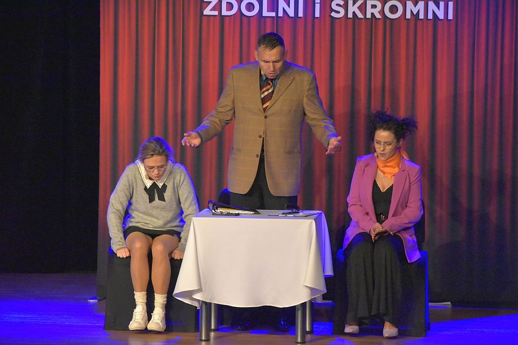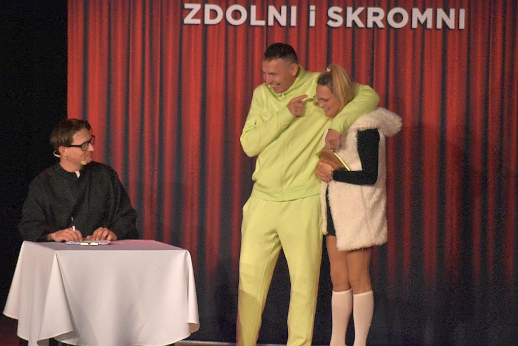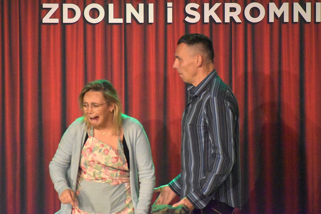 Ilu zechce zakupić płytę z nagraniem występów Zdolnych i Skromnych – nie wiadomo, bowiem Ewelina Wojtak zachęciła do zakupów internetowych. Wiadomo, że posiadają ją państwo Marek i Ewa, bohaterowie spektaklu mimo woli – oni właśnie padli „ofiarą” zarzucenia wędki nawiązującej kontakt z widownią, która dowiedziała się, że w pierwszym rzędzie zasiadło małżeństwo z Jaworzna, z biletem podarowanym przez dobrego syna. Przezorni nie siadają na występach kabaretowych blisko sceny, bo mogą zostać na scenę wyciągnięci, ale też do dostają prezentów. Coś za coś.
