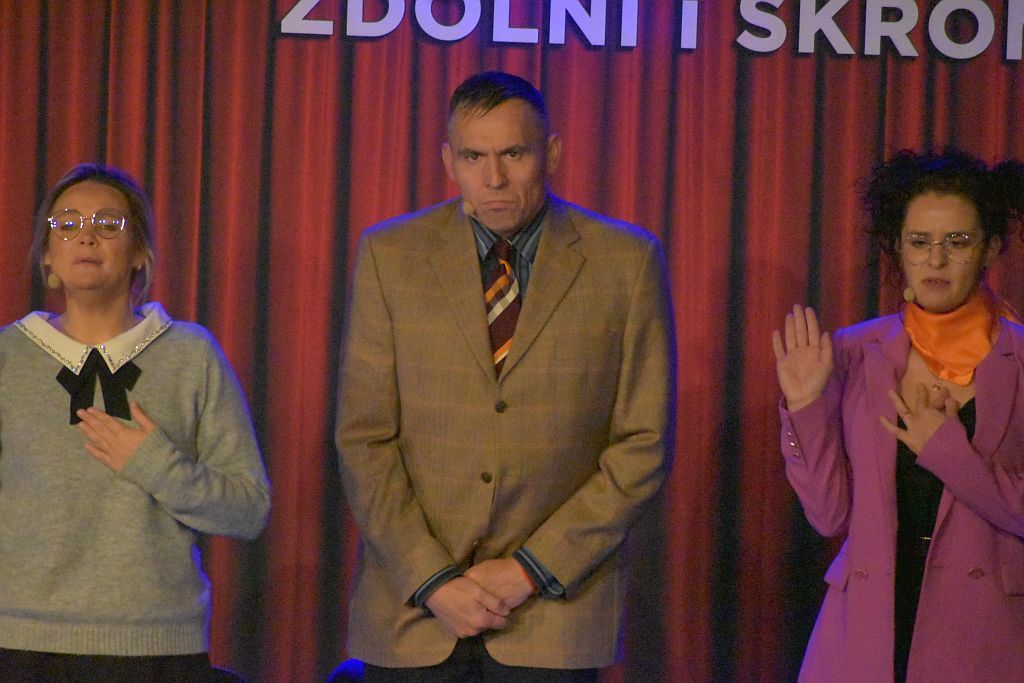 Skromne przedstawienie artystów kabaretowych przekonuje, że publiczność nie mogła być zawiedziona spektaklem. I tak rzeczywiście było. Brawa towarzyszyły wszystkim skeczom, który w programie „Da się zrozumieć” nie dla wszystkich był całkowicie zrozumiały. Przyczyną był podział, wręcz segregacja, którą kabareciarze wprowadzili na samym początku występu. Segregacja? Podziały? Antagonizowanie społeczności, która na występy przybyła i zapłaciła (wcale nie mało) – toż to nie występ, lecz występek!