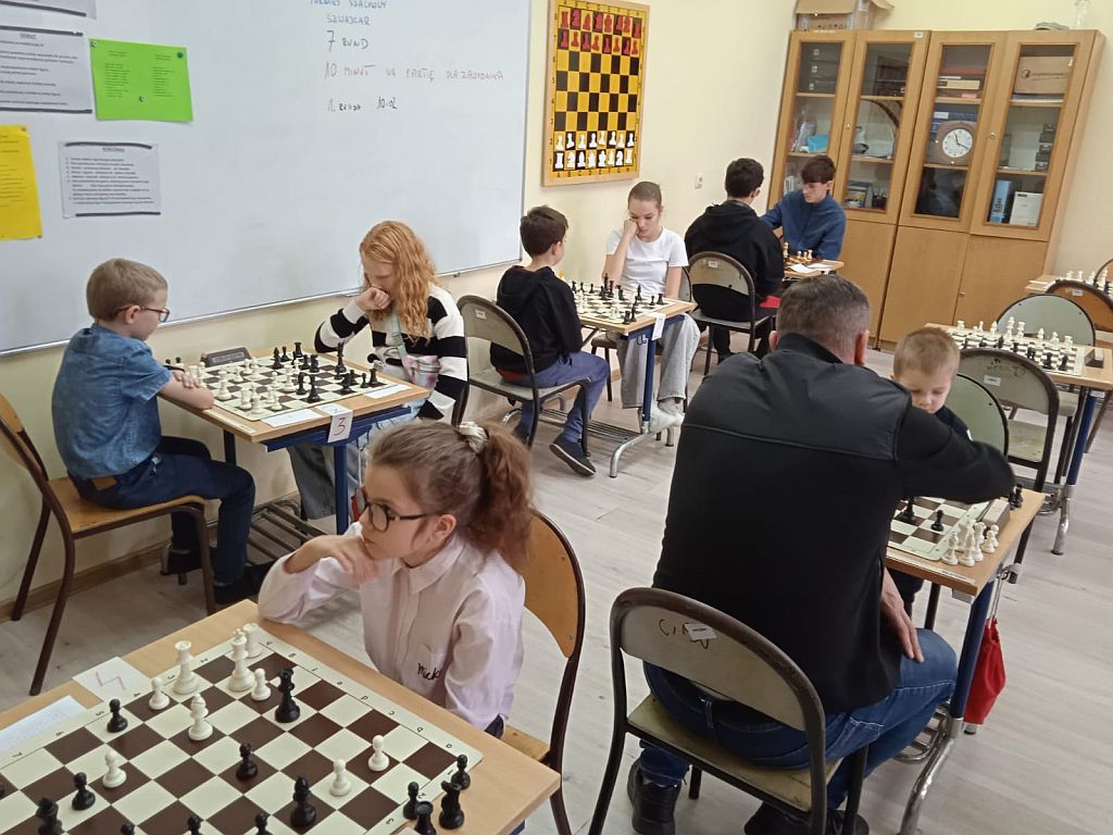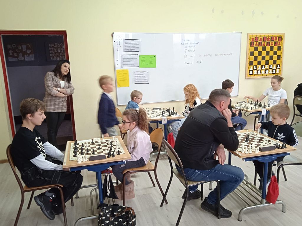 Jak co roku w połowie listopada dochodzi w MDKu do otwartego turnieju szachowego. Tym razem w zawodach wzięło udział kilkunastu zawodników, w tym Tato dwóch szachistek ( zwyciężył w kategorii absolwenci). Jak emocjonujące muszą być pojedynki toczące się w czterech ścianach domu rodzinnego! Z kronikarskiego obowiązku dodam, że najmłodszy gracz ma 4 ( cztery!) lata. Ale wróćmy do turnieju! Był niemniej emocjonujący niż potyczki domowe. W każdej partii zawodnik miał do dyspozycji 10 minut, to szachy w wariancie „szybkie”. Taki czas zapewnia dodatkowe emocje, ale nikt z grających nie wykorzystał swojego czasu do końca. Nasz jesienny turniej składał się z siedmiu rund. W ich wyniku najlepszym graczem okazał się Kewin Kustosz, który zdobył 7 punktów (na siedem możliwych!), drugie miejsce wywalczył Aleks Koszowski, zaś trzecie miejsce przypadło Adamowi Rysiowi. Obydwaj wygrali po pięć partii