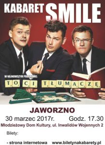 „To Ci tłumaczę!” – to tytuł najnowszego programu kabaretu Smile z Lublina. Jak sam tytuł sugeruje będą zagadnienia z życia codziennego, które wbrew pozorom wymagają tłumaczenia w stylu kabaretu Smile. Dylematy młodego ojca oraz problemy z naszym pięknym polskim językiem jak zwykle Michał rozwiązuje śpiewająco (tak, naprawdę śpiewa na żywo). Pojawia się jutuberka (modne ostatnio słowo) o skomplikowanym pseudonimie artystycznym. Artyści tłumaczą też i zwracają uwagę na wszechobecne uzależnienie od nowoczesnych technologii, ale też od dopalaczy. Choć śmiało stwierdzić można, że to pierwsze z powodzeniem w nowym programie wykorzystują.