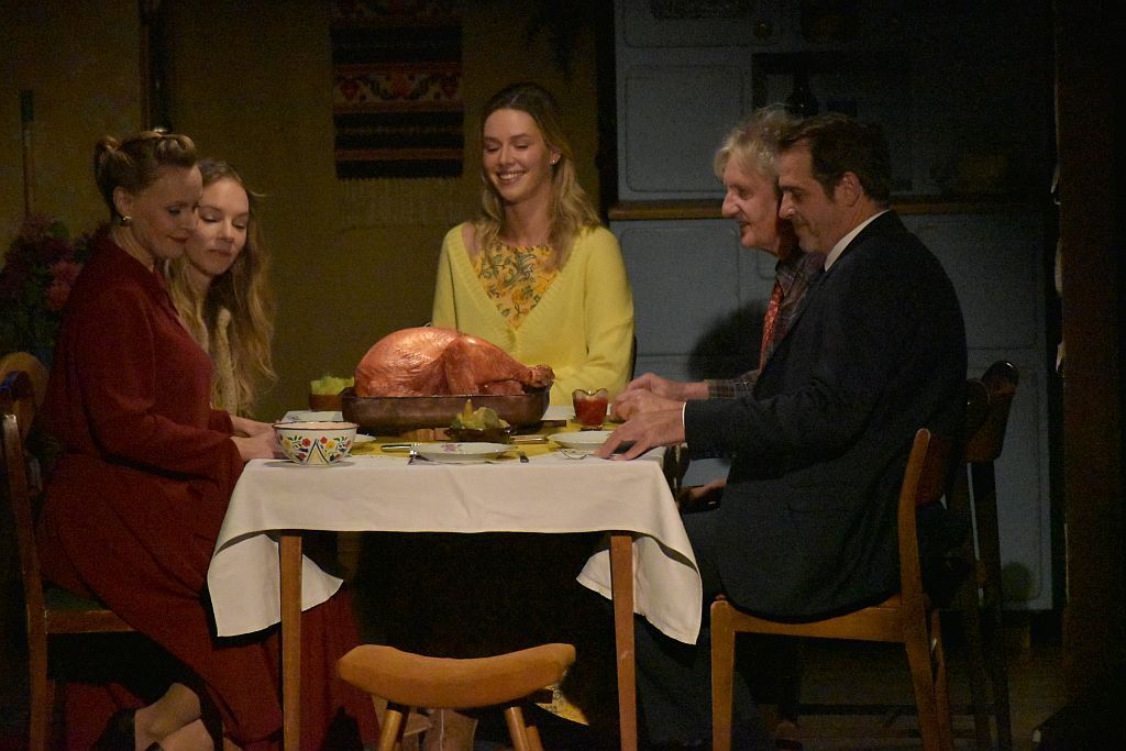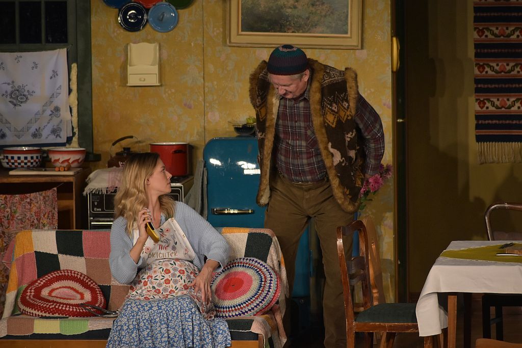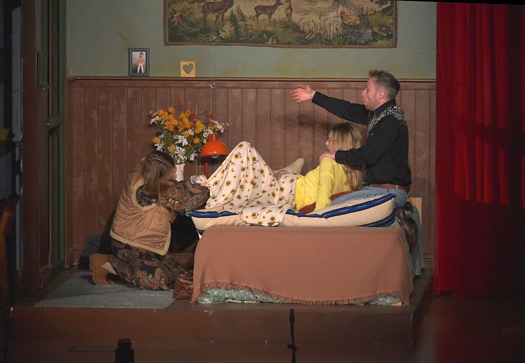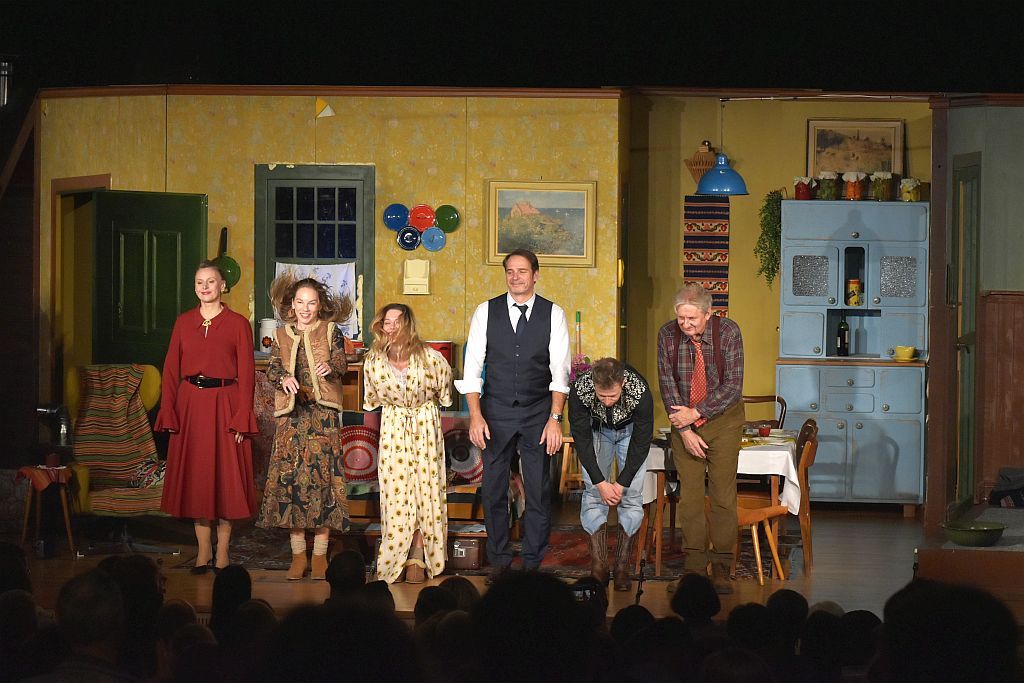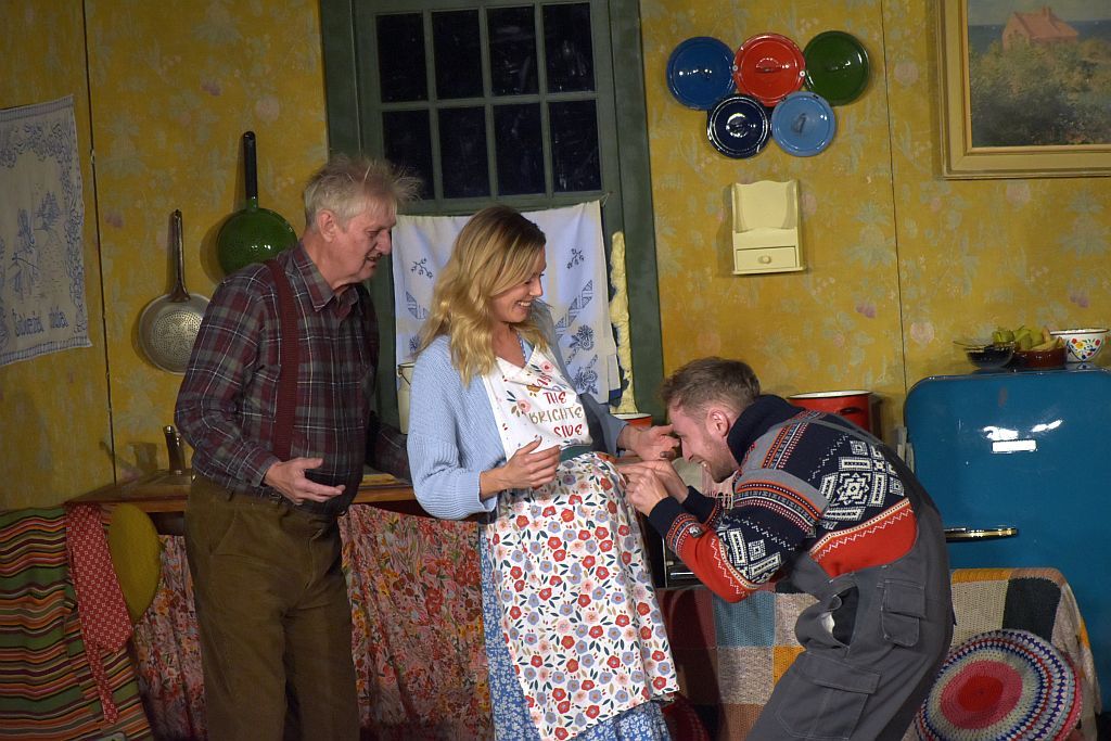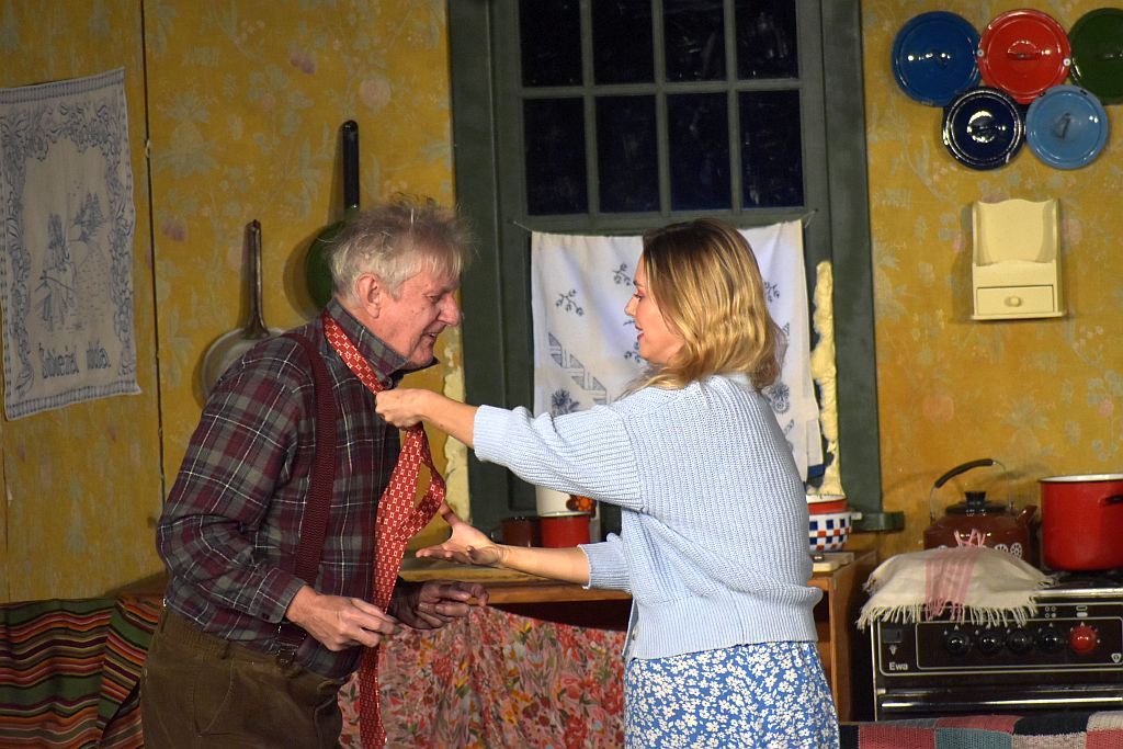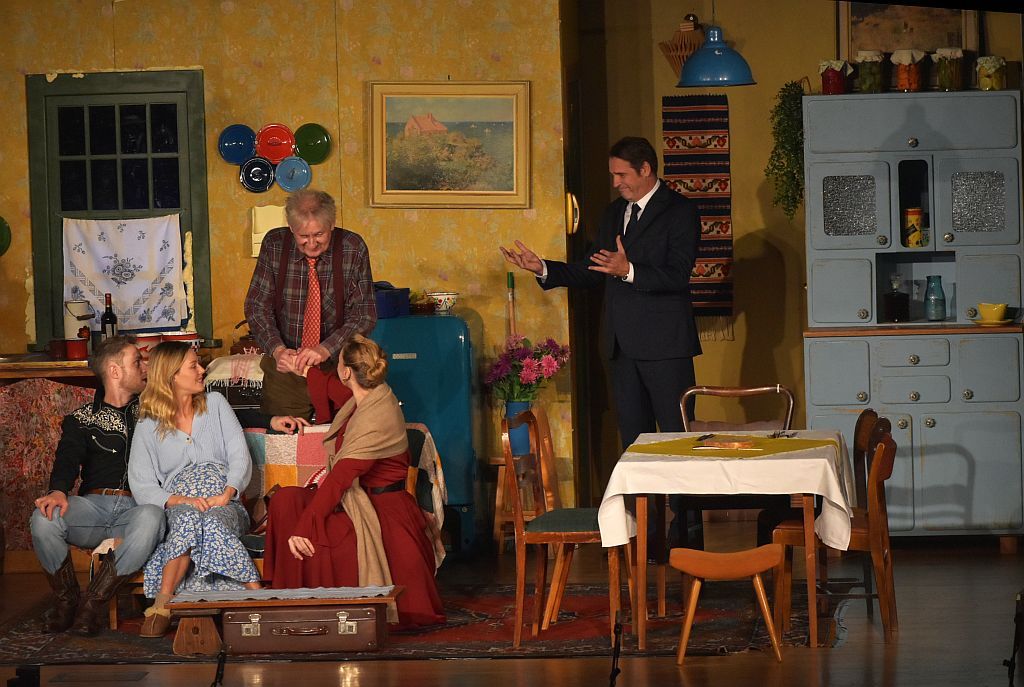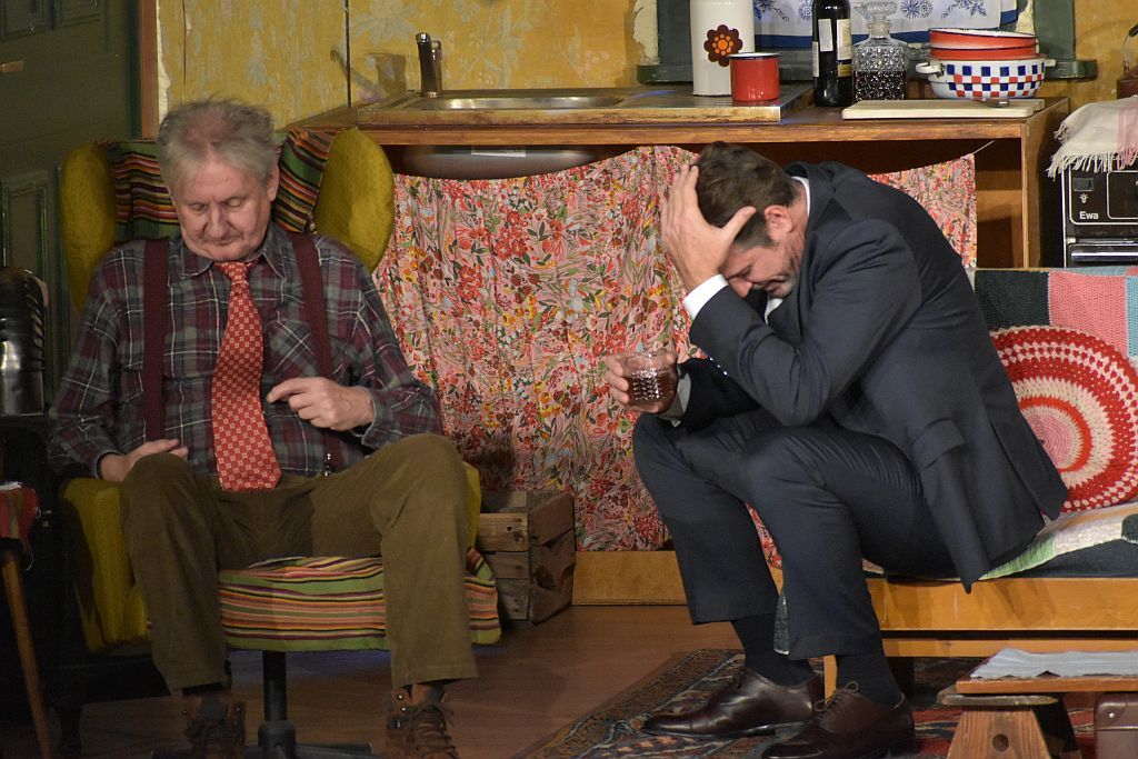 Warto podkreślić również rewelacyjną scenografię Marka Idzikowskiego – widownia wręcz zdębiała, gdy nagle z dwóch pomieszczeń – kuchnio – salonu i sypialni wyłoniła się nagle za sprawą tylko i wyłącznie światła – wiejska przyzba. Miejsce przed chatą, na której zasiadł Dziadek, żeby – jak podejrzewał Syn, miał zamiar umrzeć, by nie być ciężarem dla młodych. Zamiast umierania – obaj panowie się dogadali i wrócili w najlepszej zgodzie zresztą kochającej się rodziny.