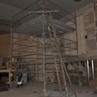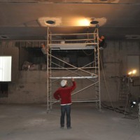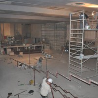 Wewnątrz budynku roboty posuwają się mniej spektakularnie, ale to jest specyfika prac wykończeniowych. Sufit nabiera kształtu, pojawiły się plastrony z wyciętymi otworami na oświetlenie i instalacje zapewniające właściwa klimatyzacji sali. Zamontowano panele ścienne. Kierownik budowy zapewnia, że prace realizowane są we właściwym tempie.